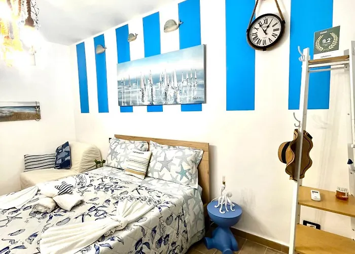 Eine komplette Küche mit einem Wasserkocher, einem Kühlschrank und Küchenutensilien gehört zur Ausstattung dieses Apartments für Selbstversorger. Die Bushaltestelle Largo Adua liegt in ungefähr 10 Gehminuten Entfernung von der 35 m² großen Ferienwohnung Stella Di Mare entfernt.